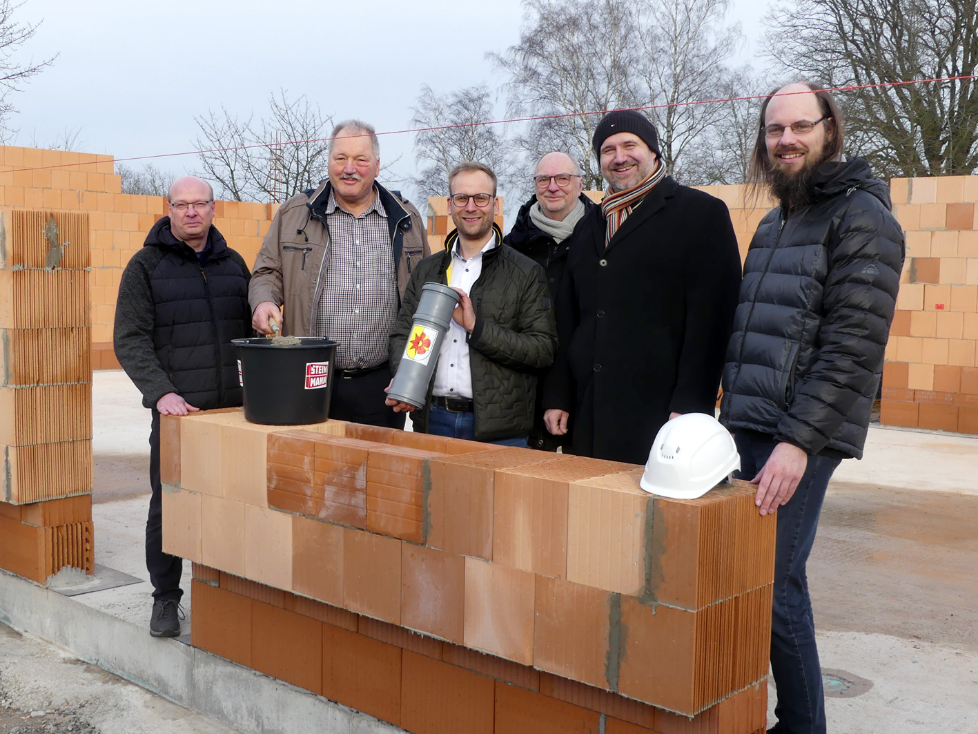 Barntrup (rr). Inmitten einiger bereits aufgerichteter Mauern wurde am Mittwoch vergangener Woche der Grundstein für das neue