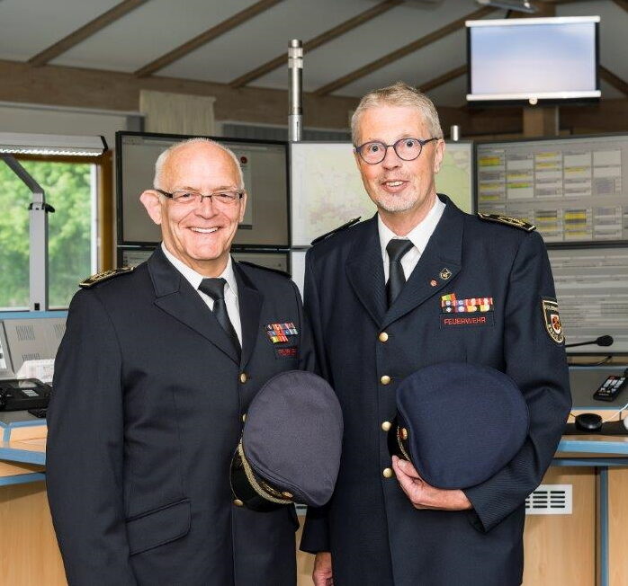 Ihr jahrzehntelanger Einsatz hat sich auch an anderer Stelle verdient gemacht: 2008 wurden sie zum Kreisbrandmeister und stellvertretenden Kreisbrandmeister für den Kreis Lippe ernannt. Ein Amt, das beide mit „großer Leidenschaft und Erfahrung“ bekleidet haben, wie Landrat Dr. Axel Lehmann in seiner Dankesrede betonte.